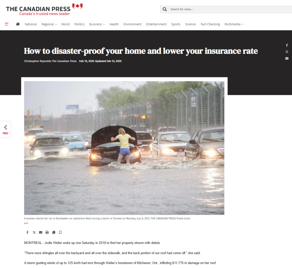 Shortly after, the Canadian Press wrote a story about natural disasters, sharing ways for homeowners to protect their homes from future events and to potentially save money on insurance premiums at the same time.
